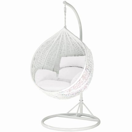 Градинската люлка е изработена със стабилна и здрава конструкция от PVC ратан и метал, и има меки възглавници за оптимален