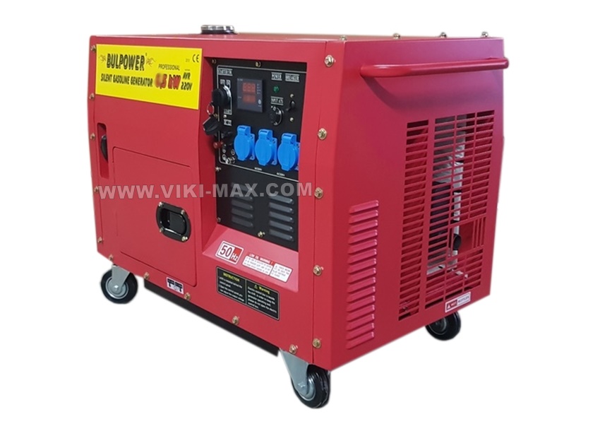 Предлагаме Ви, новите обезшумени и водозащитени генератори пълна автоматика 7.5 KW. Бензинови четиритактови генератори Bulpower, с пълна автоматика и автоматично старт-стоп табло с контакторна група, които служат за напълно автоматичното стартиране /спиране на генератора при отпадане/възстановяване на основното ел. захранване. Гарантирано безотказно и без никаква човешка намеса. При прекъсване на електрозахранването, в автоматичното старт-стоп табло, управляващо генератора има монтиран вграден таймер, който прави три последователни опита за стартиране на генератора. Автоматичният таймер, след възстановяване на електричеството гаси автоматично генератора след 30 секунди. В интелигентното управляващо табло има вградена изцяло автоматична двупосочна контакторна система, непозволяваща на генератора при отпадане на нормалното електричество и при включване на режим генератор да се върне ток към електропреносната мрежа. И обратно – при възстановяване на нормалното електричество спира автоматично подаването на ток от генератора към електрическото табло. Вградено автоматично зарядно за акумулатора на генератора: в нашите генератори ATS системата в автоматичното старт-стоп табло следи за нивото на заряд на акумулатора и при нужда го дозарежда до нужния заряд, за да може всеки път генератора да стартира безупречно. Когато генератора не е превключен на режим автоматика, паленето на генератора е с ключ, който е на управляващото старт-стоп табло. Генераторите са с медни ротори и статори и са оборудвани с автоматичен смукач. Двигател: GX 760 с въздушно охлаждане, 16 конски сили. Работна честота: 50 Hz. Вграден AVR /Automatic Voltage Regullator/. С генератора без проблем и без никакви смущения работят всякакви прецизни електроуреди като LED, LCD и Plasma телевизори, компютри, непрекъсваеми захранвания (UPS-и) и други подобни. Автоматичен предпазител против претоварване на генератора. Магнетен стартер и автостартер с ключ и акумулатор. Транспортна рамка с колела и дръжки за по-лесно предвижване на генератора. Изходи за 220 V и за 12 V. Разход: 450 грама бензин на киловат час при пълно натоварване. Размерите му са: дължина 98 см., ширина 49 см. и височина 70 см. Тегло 125 кг. Гаранция 36 месеца. Гаранционен и следгаранционен сервиз. *** В специализирания ни сервиз приемаме за ремонт всякакви марки и модели инверторни електрожени, СО2 телоподаващи устройства, генератори за ток, плазми за рязане, зарядна техника, електроинструменти, моторни коси, водни помпи за поливане и отводняване и много други.