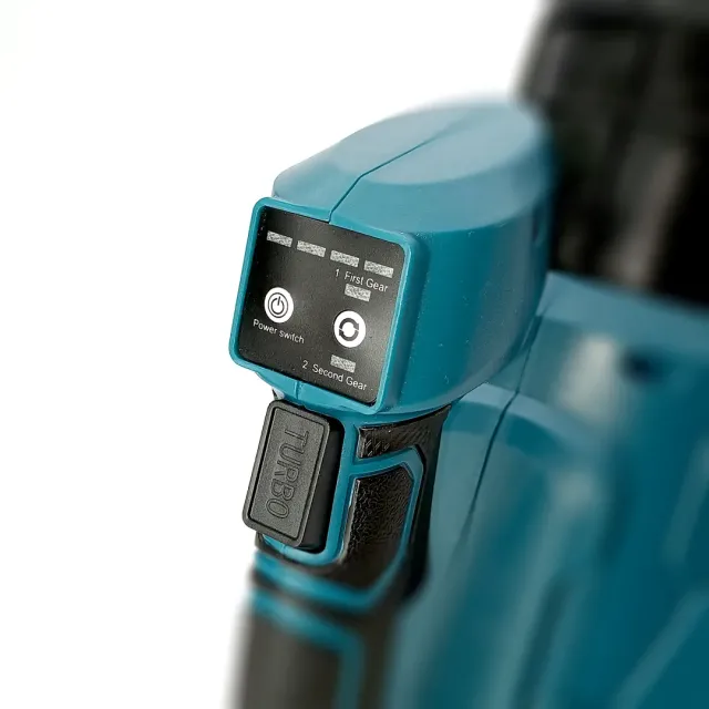Подходяща е за използване в градината за издухване на лист. Има 2 накрайника. Литиево-йонната батерия.