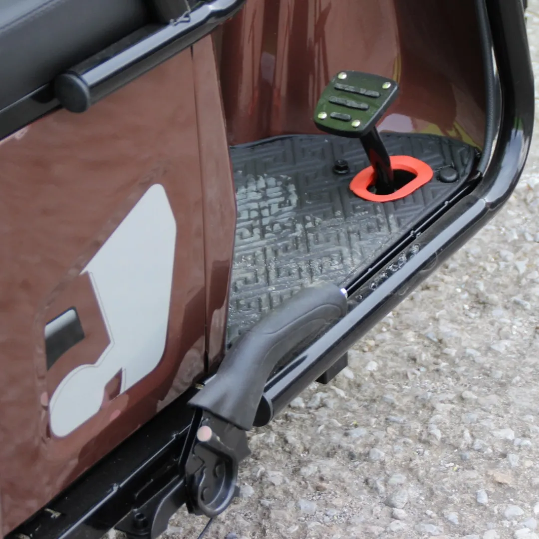 Двуместна електрическа карго триколка Max Motors CARGO LUX 1500W. Моделът е изключително атрактивен и подходящ за разходка на един или двама пътници. Задната седалка с едно движение се повдига и задната част се превръща в място за товар. Страничната част на задното отделение е със врата, което допълнително допринася за удобното пренасяне на товари. Изключително функционални, както за града, така и за по-малките населени места.