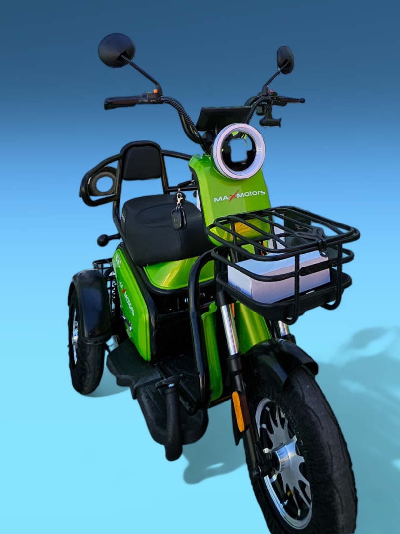 Двуместната електрическа триколка MaxMotors Pudding е компактно и функционално превозно средство, предназначено за градски условия и кратки разстояния. Тя е подходяща за хора, които търсят удобен, екологичен и практичен начин за придвижване. Лесен за управление, подходящ както за младежи, така и за възрастни хора. Икономична алтернатива на автомобилите за кратки разстояния. Екологичен избор – безвредни емисии.