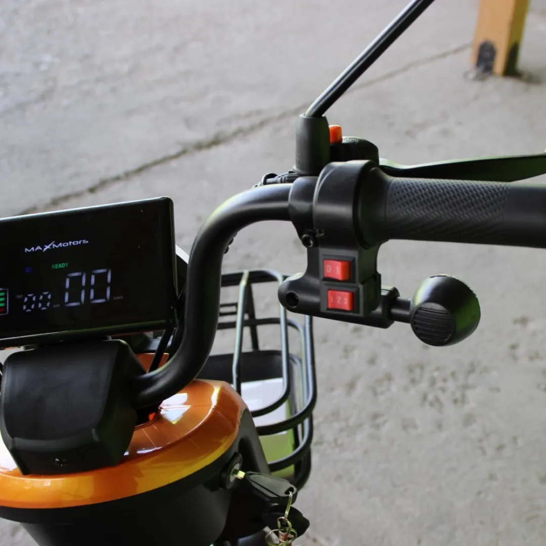 Двуместната електрическа триколка MaxMotors Pudding е компактно и функционално превозно средство, предназначено за градски условия и кратки разстояния. Тя е подходяща за хора, които търсят удобен, екологичен и практичен начин за придвижване. Лесен за управление, подходящ както за младежи, така и за възрастни хора. Икономична алтернатива на автомобилите за кратки разстояния. Екологичен избор – безвредни емисии.