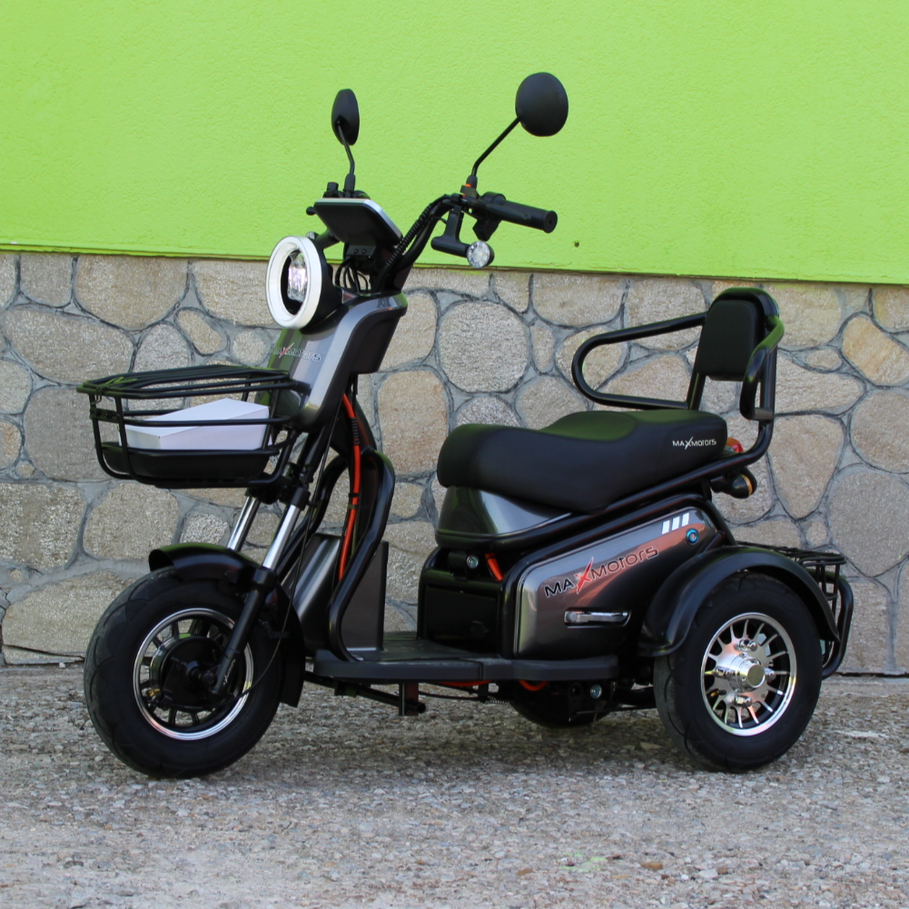 Двуместната електрическа триколка MaxMotors Pudding е компактно и функционално превозно средство, предназначено за градски условия и кратки разстояния. Тя е подходяща за хора, които търсят удобен, екологичен и практичен начин за придвижване. Лесен за управление, подходящ както за младежи, така и за възрастни хора. Икономична алтернатива на автомобилите за кратки разстояния. Екологичен избор – безвредни емисии.