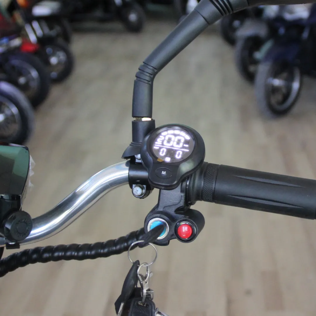 Електрическа триколка с предно предаване, крачна спирачка, удобно луксозно кожено кресло с вдигащи се подлакътници, което има механизъм за завъртане на страни за по- удобно слизане и качване на триколката. Нови подобрени модели с по-издръжливи батерии.Триколката е подходяща за възрастни хора, за деца, за отдаване под наем, за атракциони, хотели и почивни бази. Удобна и стабилна при завои поради удължената задна ос от гума до гума 68 см.