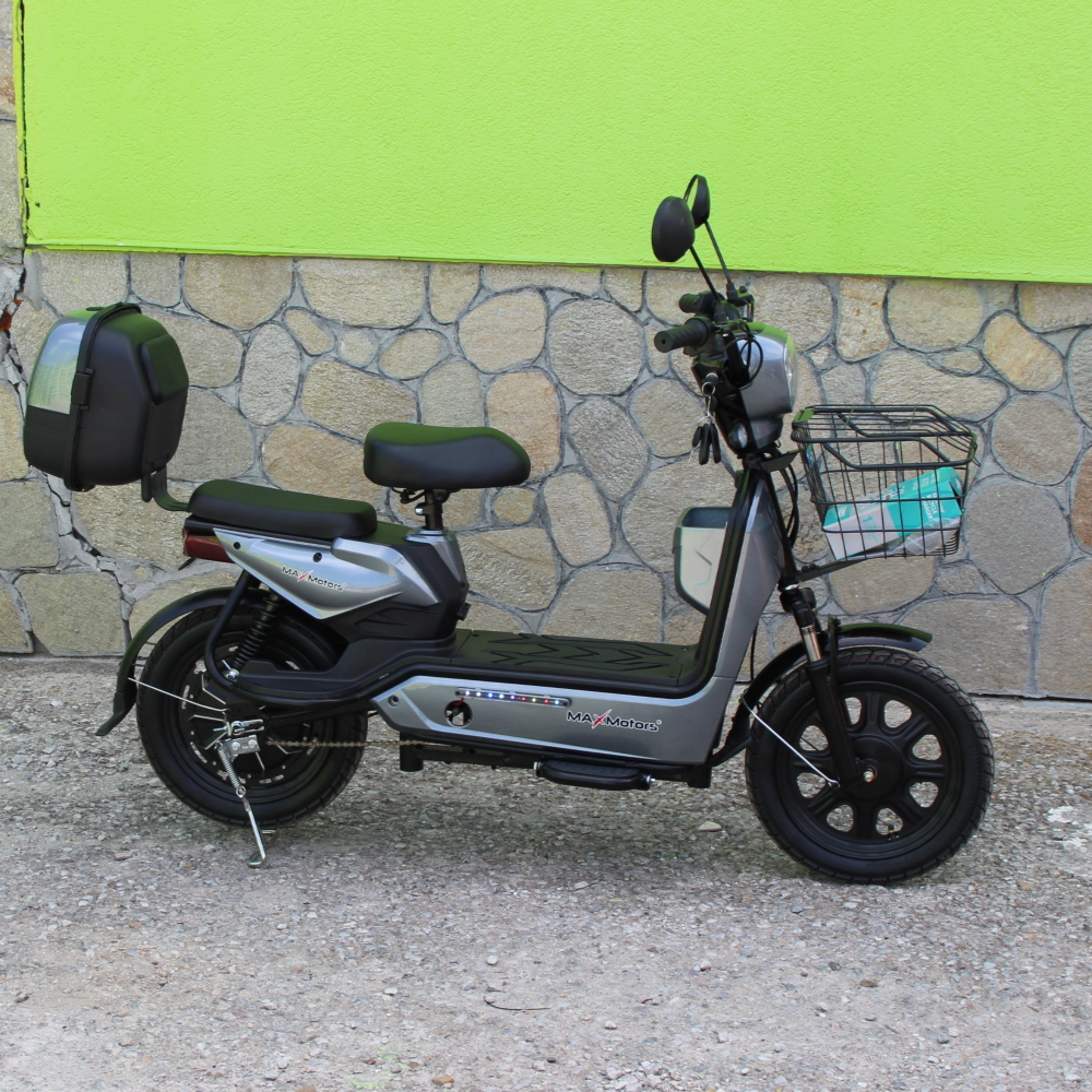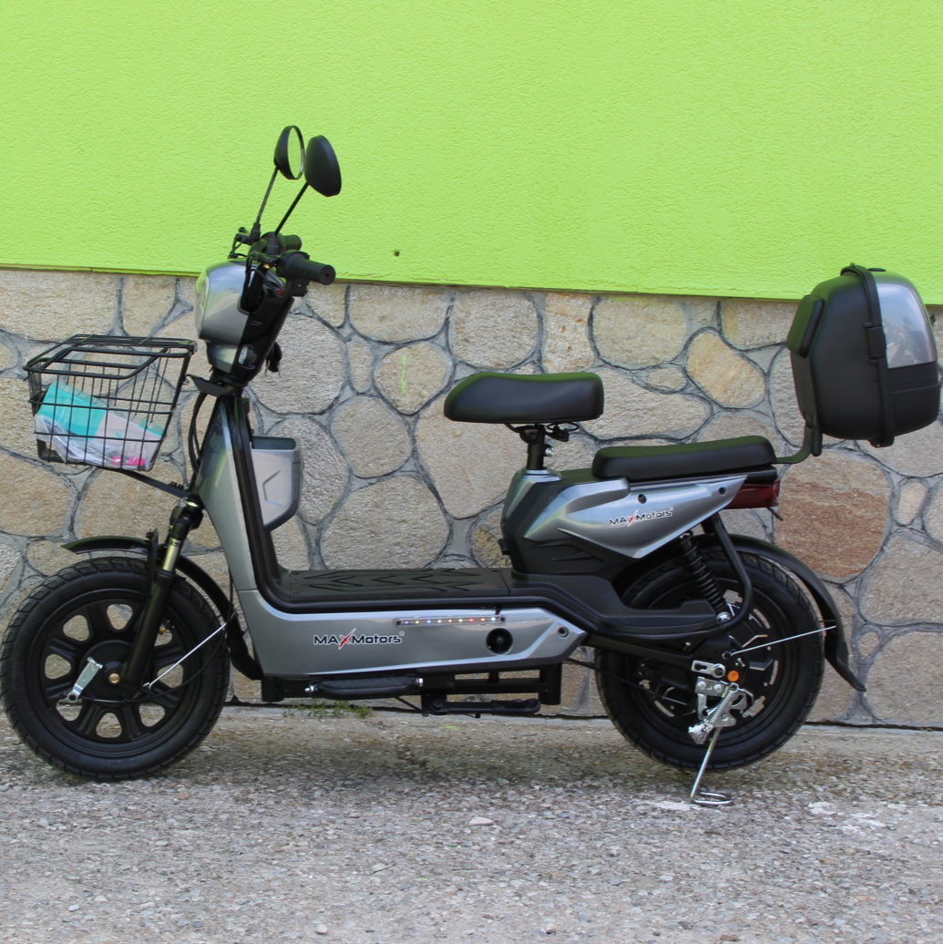 Електрически двуместен скутер – велосипед MaxMotors със 16″ гуми, 750W, 48V/20Ah GRAY