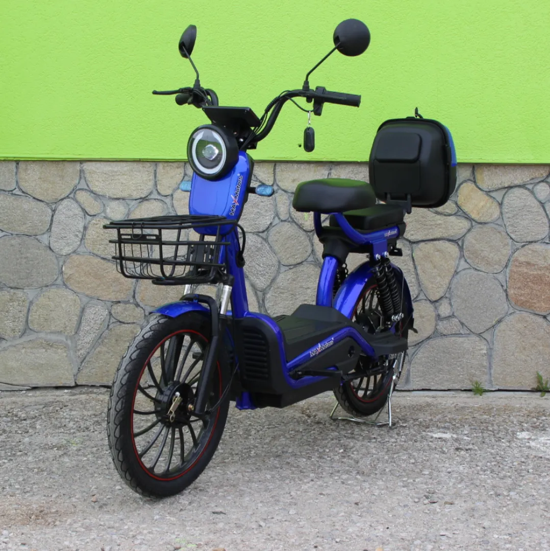 Електрически двуместен скутер – велосипед MaxMotors е със големи 20″ гуми, електромотора е изключително мощен 1200W. С пробег от 60 до 80 км с едно зареждане, този модел е идеален за всекидневни пътувания в града!