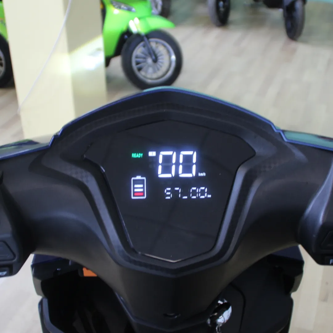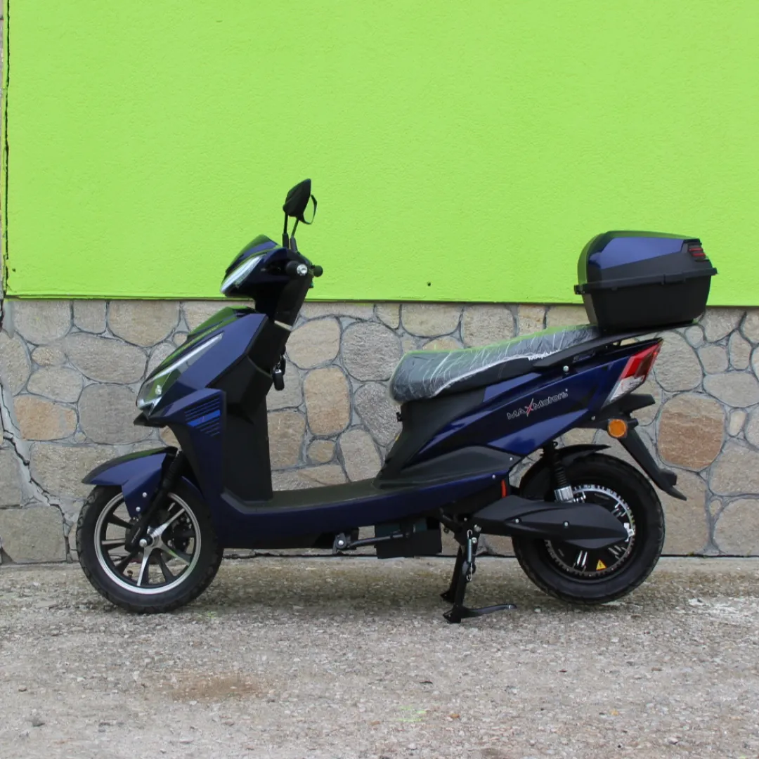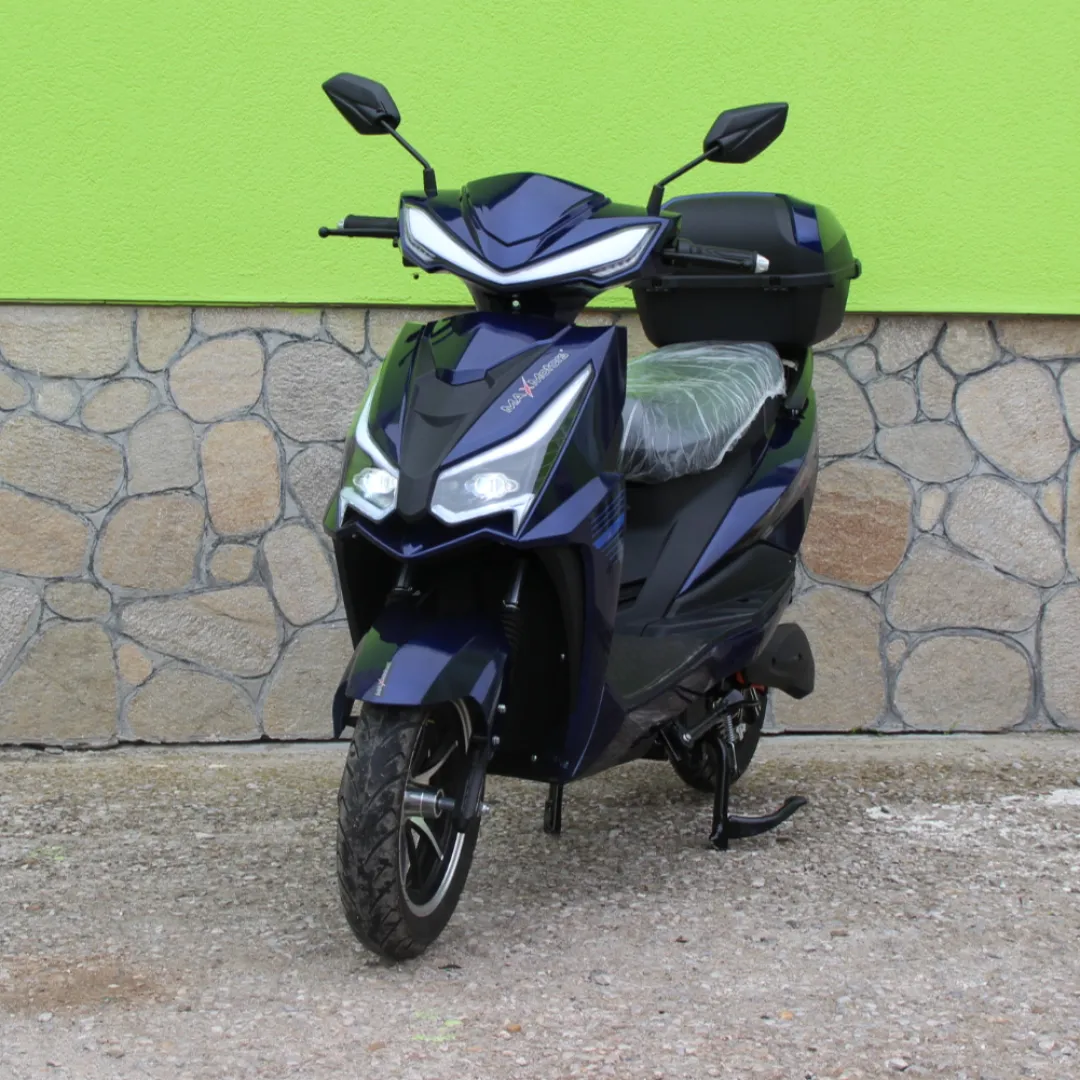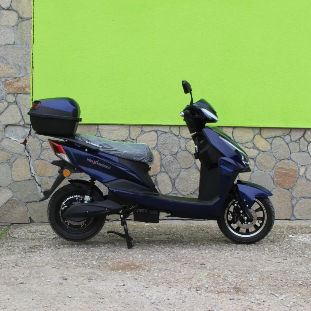 Удобен двуместен електрически скутер за градски и извънградски условия. Голям пробег, достигащ до 100 км. Пълен пакет от документи за регистрация в КАТ. Багажен отсек под седалката, аларма с дистанционно управление, USB порт за зареждане на телефон, стойка за багаж под кормилото, задна скорост, голям LED дисплей с подсветка, с показания за скорост, изминато разстояние, пътепоказатели, светлини, ниво на батерията и още други екстри.