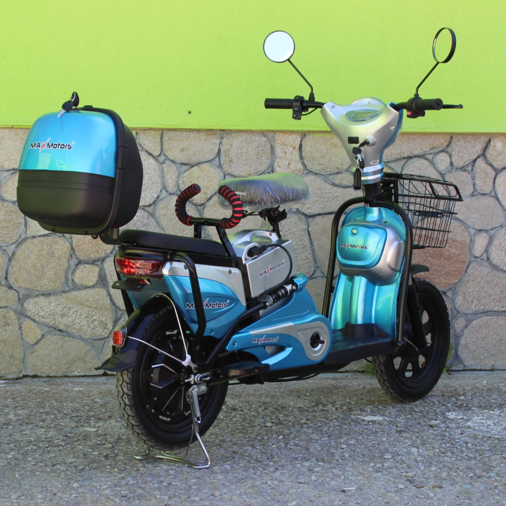 Електрически скутер – велосипед MaxMotors EBZ16 500W 48V/12Ah с двойна седалка и преносима батерия. Без необходимост от регистрация в КАТ.