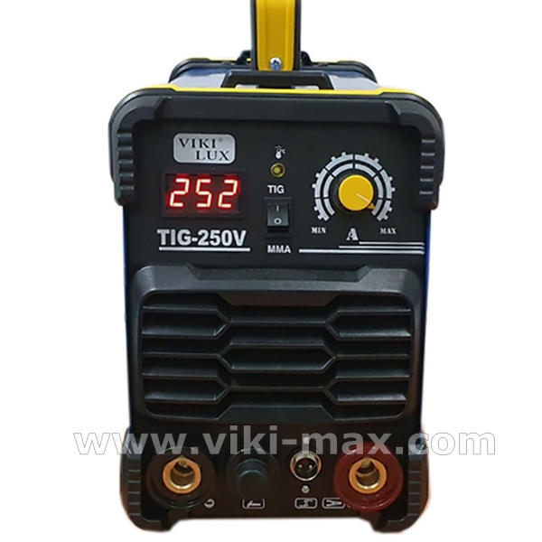Гарантирано заваряване с всички видове електроди с дебелина до 5mm., включително и с волфрамов електрод в защитена среда (TIG). Изключително високо качество на заварката както при черни, така и при цветни метали алуминии. Включено гаранционно и извън гаранционно обслужване. Моделите VIKI TIG MMA 250 А са апарати за ММА и TIG – електродъгово заваряване и заваряване с волфрамов електрод в защитна газова среда. Превключването между двата режима става много лесно, посредством ключе на лицевия панел.Има и дигитален дисплей за наблюдение на моментния ампераж.