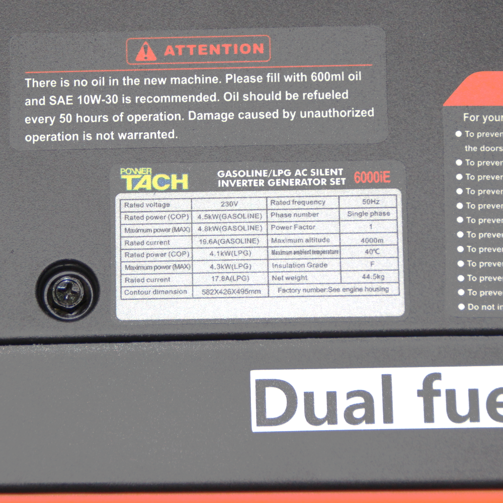 Генератор за ток на газ Power Tach 4.5 kW модел 6000iE монофазен инверторен