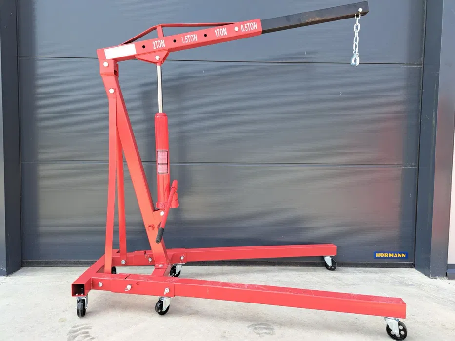 Кран тип жираф за вадене на двигател, произведен в Италия, ръчна помпа с предпазен вентил от претоварване, капацитет 2 тона