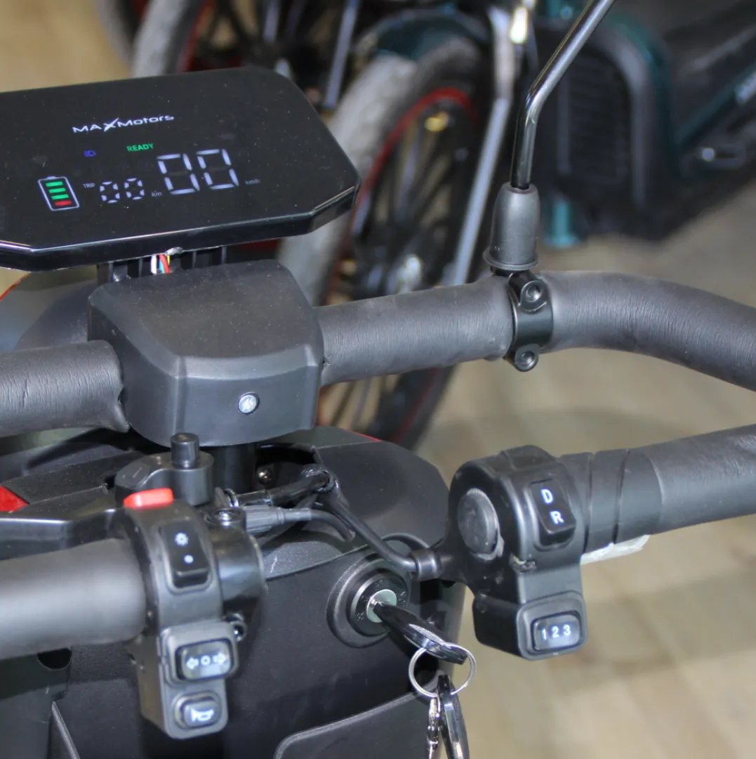 Новият модел електрическа четириколка MaxMotors A9 е оборудвана с пълна LED светлинна окомплектовка, голям цветен дисплей. С мощният си двигател 1500W и големите батерии 48V/20Ah може да преодолява наклони до 25°. Перфектият избор на превозно средство да отидете на разходка в парка или до магазина на пазар, има две големи кошници за багаж!