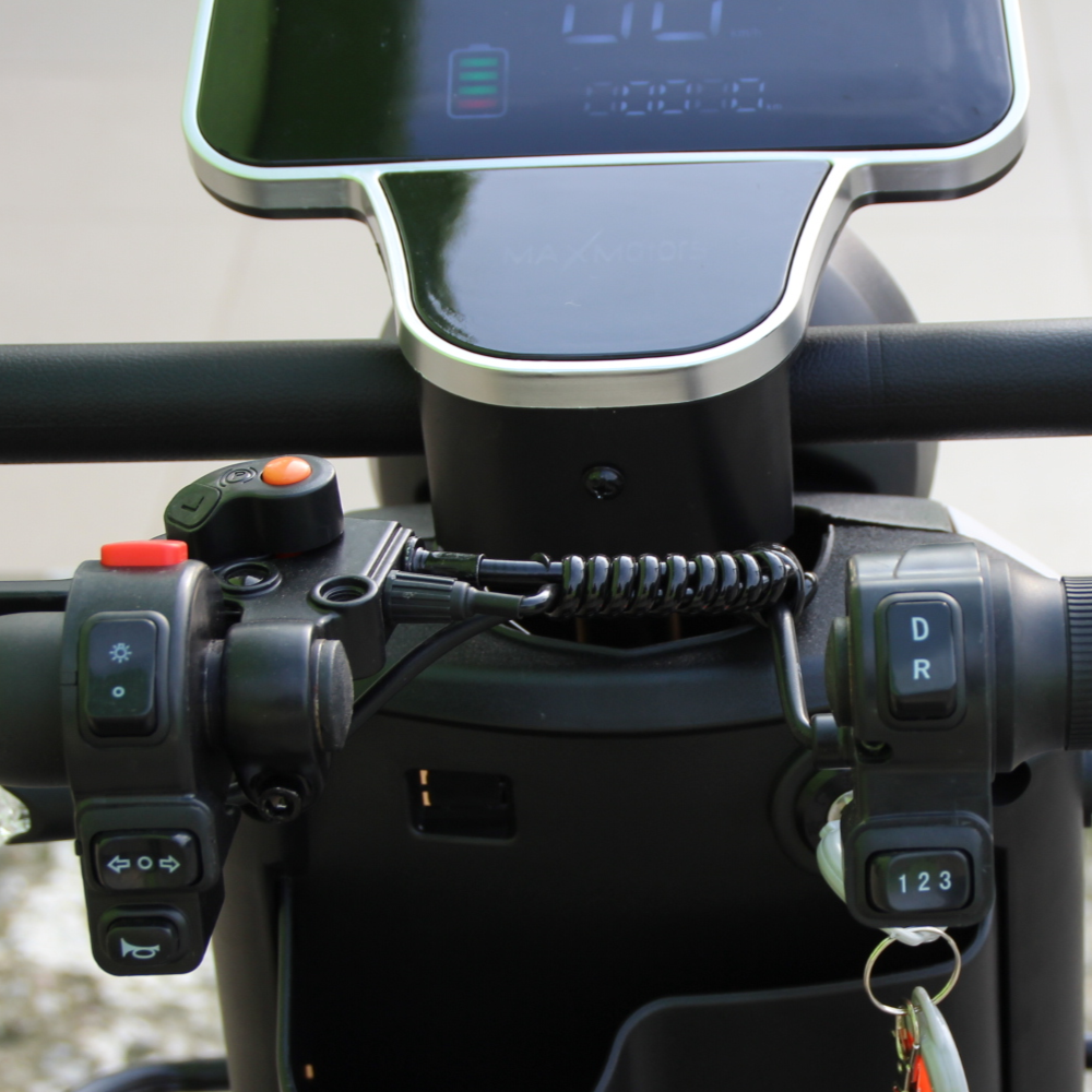 Новият модел електрическа четириколка MaxMotors A9 WHITE е оборудвана с пълна LED светлинна окомплектовка, голям цветен дисплей. С мощният си двигател 1500W и големите батерии 48V/20Ah може да преодолява наклони до 25°. Перфектният избор на превозно средство да отидете на разходка в парка или до магазина на пазар, има две големи кошници за багаж!