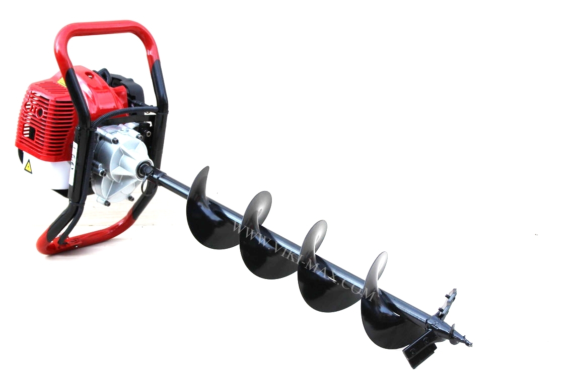 Бензинов моторен свредел VIKI с двутактов двигател 52 CC с въздушно охлаждане. Свредела е идеален за засаждане на дървета, растения , храсти и други. Подходящ за дупки с ширина до 200 мм. Възможност за монтиране на приставка с антивибрационна пружина за обиране на по-големи вибрации при правенето на дупки. Нашите свредла/бургии са с двойно по-голяма ножова спирала от всички други на пазара, което предотвратява и ограничава до максимум връщане на почва обратно в дупката при изкарване на бургията от направената вече дупка. Технически данни: Двигател: Двутактов, Обем двигател: 52 куб.см, Мощност – 2,4 КВт, Обороти при свободен ход: от 2700 до 3000 об./мин, Запалване: ръчен стартер/с въже/, Вместимост на резервоара: 1,2 литра, Подходящ за дупки с ширина до 200 мм. Съотношение бензин/моторно масло – 25 : 1. Дълбочина на пробиване: до 800 мм. Изходящ вал за свредлото/бургията: Ф 200 мм. Максимално ниво на шум: 103 dB. Тегло на машината/без свредло/ – 10,5 кг. Тегло на свредлото/100 мм/ – 3 кг. Гаранционен и следгаранционен сервиз.
