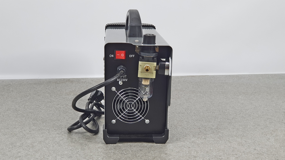 Регулиране на ампеража 10-55 A. Рязане на метал и алуминий. Бързо охлаждане с вентилатор. Голяма производителност. Необходим въздух минимум 2.5-3 бара. Тегло 15 кг.