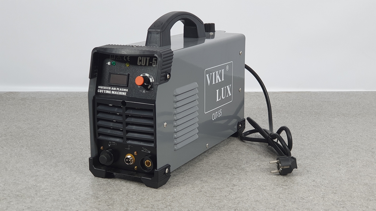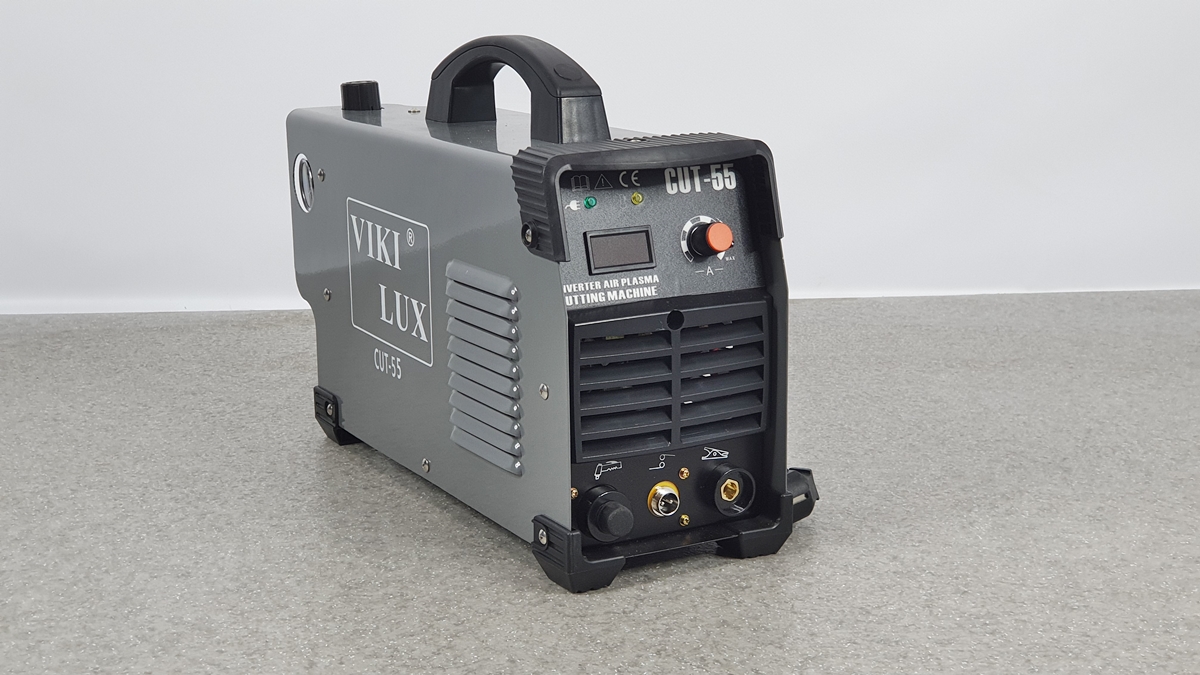 Кабел маса. Действие с дистанционно палене 3 дюзи 3 циркониеви електрода 2 керамични шапки за плазмата. Вграден манометър за конденз и налягането. В резултат на специални свойства, като по-висока скорост и прецизност на контрол дават на устройствата отлично качество при рязане. VIKI CUT 55 е машина за индустрията, занаятчийски и частни работилници и други.