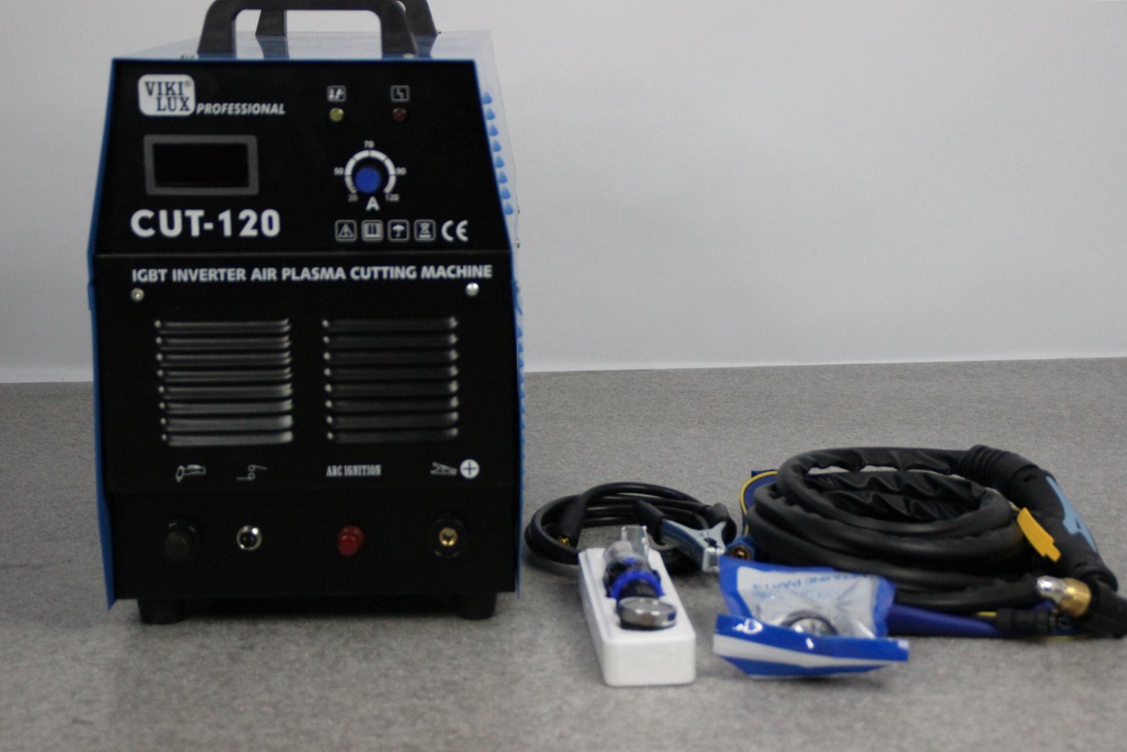 Апаратът за плазмено рязане VIKI LUX -CUT 120 се нуждае само от електрическо захранване и компресор за въздух. Рязане на метали до 45 мм, автоматично охлаждане с вентилатор, голяма производителност, необходимо налягане от компресора минимум 2.5-3 бара и 110 литра/мин. Тегло 36 кг.