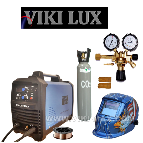 Предлагаме на Вашето внимание VIKI LUX MIG – 200А – ММА професионални инверторни заваръчни апарати с вградено телоподаващо устройство с уникални размери. С тях се заваряват всички черни метали, алуминий, неръждавейка, чугун, бронз и месинг. Захранваща мощност: 5,2 kVA, монофазни /220V/, 200 ампера, степен на защита: IP21.Работи с телове размери 0.6 , 0.8 и 1.0 мм и с ролки от 1 и 5 кг. Тегло – 13 кг. без ролка.
