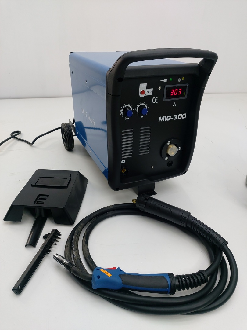 MIG-MAG/CO2/ ИНВЕРТОРЕН заваръчен апарат volt electric-MIG-300 Max Power с вградено телоподаващо устройство. Заварява всички черни метали, алуминий, неръждавейка, чугун, бронз и месинг. Окомплектован е с ръкохватка за МИГ/МАГ заваряване . ШЛАНГ С ЕВРОКОНЕКТОР ДЪЛЪГ 4.5 М щипка, МАСА ДЪЛГА 5 М, маска и чукче с четка. Регулиране на заваръчния ток/плавно/ 30-300 ампера, монофазни/220V/ Захранваща мощност: 5,2 kVA, Степен на защита: IP21. Работи с телове размери 0.6 , 0.8 и 1,0 мм. и с ролки от 1 и 5кг.ГАРАНЦИОНЕН И СЛЕДГАРАНЦИОНЕН СЕРВИЗ.В сравнение с конвенционалната заваръчна техника, уникалният HF Inverter има много предимства. Малък обем, намалено тегло, безстепенна регулация, за пестене на енергия и др. Прилагането на инверторна технология позволява на една фокусирана и постоянна мощност. Voltelectric-MIG-250 Max Power включва най-напредналите, иновативни, лесни за използване машини, така че дори