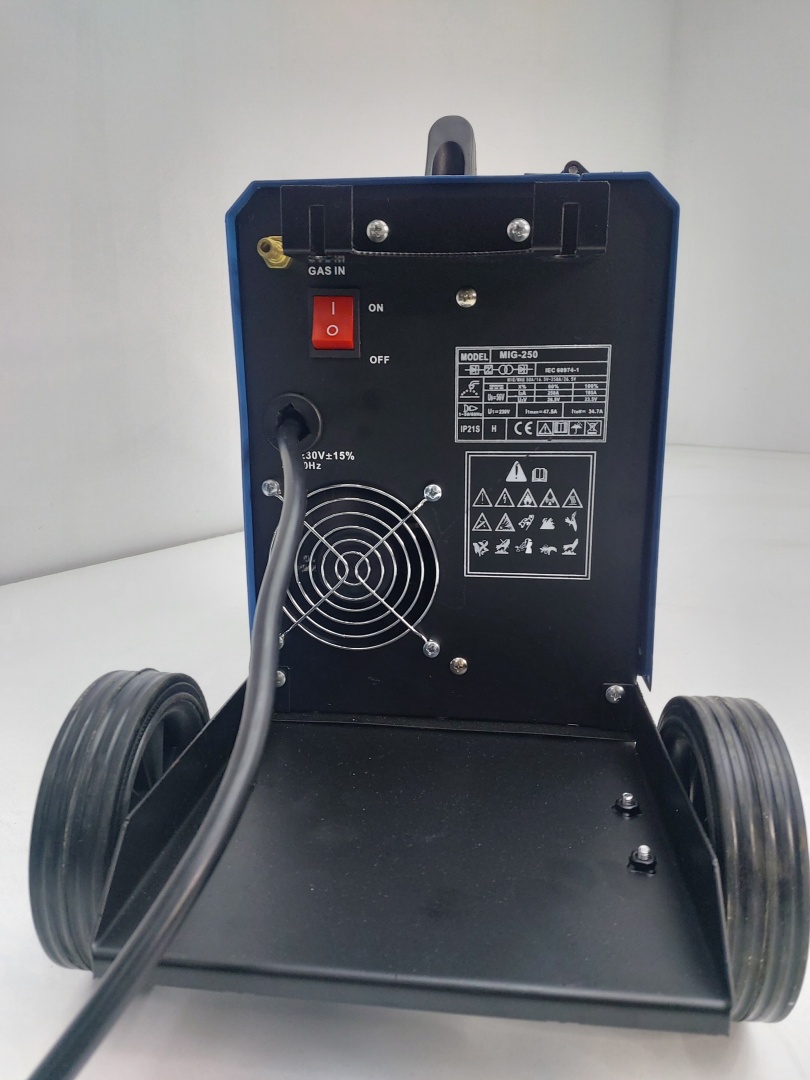 MIG 250 A ММА професионални инверторни заваръчни апарати с вградено телоподаващо устройство с уникални размери. С тях се заваряват всички черни метали, алуминий, неръждавейка, чугун, бронз и месинг. Захранваща мощност: 5,2 kVA, монофазни /220V/, 250 ампера, степен на защита: IP 23. Работи с телове размери 0.6 , 0.8 и 1.0 мм и с ролки от 1 и 5 кг. Тегло – 17 кг. без ролка.
