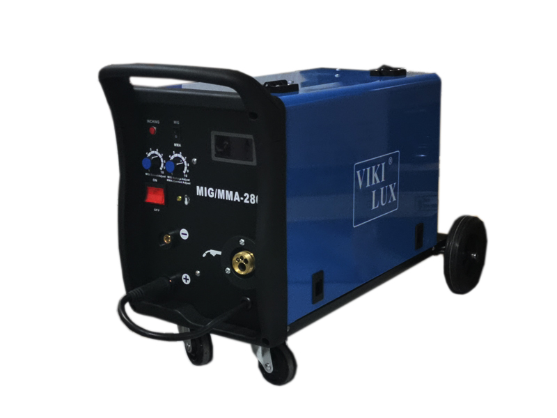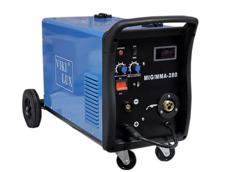 Трифазно професионално инверторно телоподаващо устройство MIG/MMA 280А VIKI LUX с електрожен. Висок клас технология. Регулиране на заваръчния ток/плавно/ 20-280A ампера, трифазен /380V/. Степен на защита – IP 21S. Работи с ролки от 5 и 15 кг. Окомплектовани са с еврошланг за МИГ/МАГ заваряване, щипка маса, маска, чукче с четка,оригинални ръкавици за заваряване от телешка кожа, ролка тел. Предназначен е за ремонтни и сервизни дейности с голямо натоварване. Поради широкия спектър на заваряване с HITECH ТЕХНОЛОГИЯ, заварява почти всички видове метал и е удобен за монтажни заварки от професионалисти и начинаещи заварчици. Телоподаващо MIG/MMA 280А VIKI LUX, може да се окомплектова с манометър и малка бутилка СО2 от 3 до 6.7 литра.