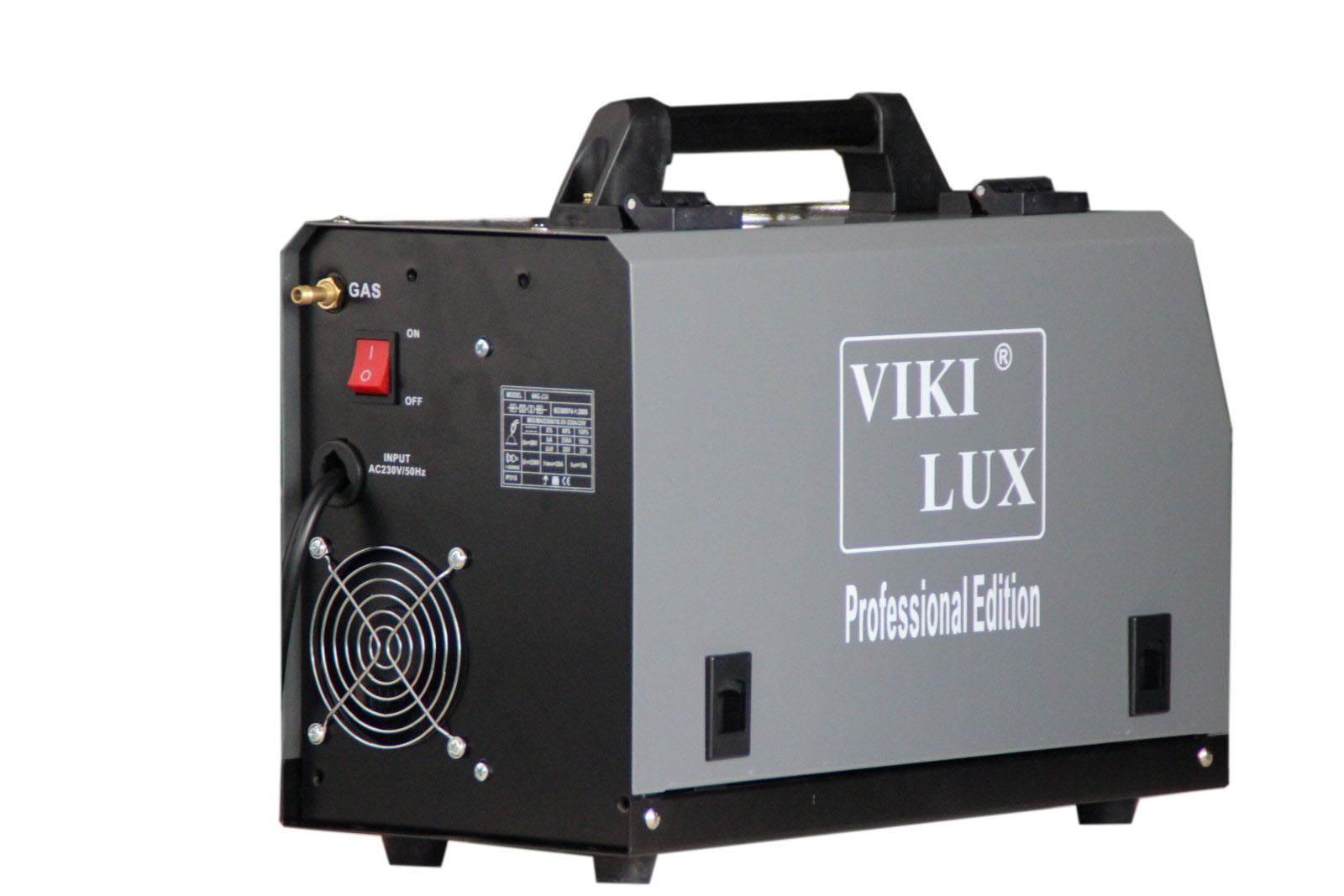 Предлагаме на Вашето внимание MIG/CO2-230 ампера професионални инверторни заваръчни апарати с вградено телоподаващо устройство. С тях се заваряват всички черни метали, алуминий, неръждавейка, чугун, бронз и месинг. Окомплектовани са с ръкохватка за МИГ заваряване, щипка маса, маска и чукче с четка,оригинални ръкавици за заваряване от телешка кожа, ролка 5 кг. Регулиране на заваръчния ток /плавно/ 30-230 ампера, монофазни /220V/ Захранваща мощност: 5,2 kVA, Степен на защита: IP23. Телоподаващото работи с телове размери 0.6 , 0.8 и 1.0 мм. и с ролки от 1 и 5 кг. Тегло – 13 кг. без ролка. Предназначен е за ремонтни и сервизни дейности. Поради малкия си габарит, тегло и широкия спектър на заваряване с HITECH ТЕХНОЛОГИЯ. Телоподаващо VIKI LUX MIG/CO2-230А заварява почти всички видове метал и е удобен за монтажни заварки от професионалисти и начинаещи заварчици. По желание на клиента, телоподаващото може да се окомплектова с манометър и малка бутилка СО2 3 или 6.7 литра.