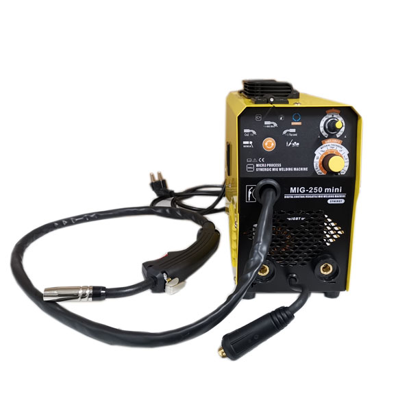 Предлагаме на Вашето внимание, VIKI LUX MIG/CO2-250 А серия SNY професионални инверторни заваръчни апарати с вградено телоподаващо устройство. С тях се заваряват всички черни метали, алуминий, неръждавейка, чугун, бронз и месинг. Окомплектовани са с ръкохватка за MIG заваряване, щипка маса, маска и чукче с четка,оригинални ръкавици за заваряване от телешка кожа, ролка 1 кг. Регулиране на заваръчния ток/плавно/ 30-250 ампера, монофазни. Захранваща мощност: 5,2 kVA, Степен на защита: IP 23. Работи с телове размери 0.6 , 0.8 и 1.0 мм. и с ролки от 1 кг. Тегло – 7 кг. без ролка. Предназначен е за ремонтни и сервизни дейности. Поради малкия си габарит, тегло и широкия спектър на заваряване с HITECH ТЕХНОЛОГИЯ VIKI LUX MIG/CO2-250 А заварява почти всички видове метал и е удобен за монтажни заварки от професионалисти и начинаещи заварчици. По желание на клиента, телоподаващото може да се окомплектова с манометър и малка бутилка СО 2 (3 или 6,7 литра).