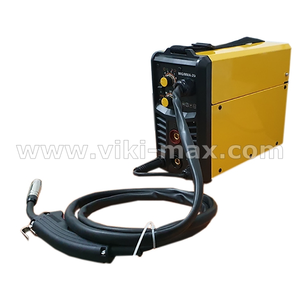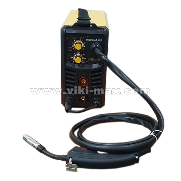 Предлагаме на Вашето внимание, VIKI LUX MIG/CO2-230 А професионални инверторни заваръчни апарати с вградено телоподаващо устройство. С тях се заваряват всички черни метали, алуминий, неръждавейка, чугун, бронз и месинг. Окомплектовани са с ръкохватка за МИГ заваряване, щипка маса, маска и чукче с четка,оригинални ръкавици за заваряване от телешка кожа, ролка 1 кг. Регулиране на заваръчния ток/плавно/ 30-230 ампера, монофазни. Захранваща мощност: 5,2 kVA. Степен на защита: IP 23. Работи с телове размери 0.6 , 0.8 и 1.0 мм. и с ролки от 1 кг. Предназначен е за ремонтни и сервизни дейности. Поради малкия си габарит, тегло и широкия спектър на заваряване с HITECH ТЕХНОЛОГИЯ VIKI LUX MIG/CO2-230 А заварява почти всички видове метал и е удобен за монтажни заварки от професионалисти и начинаещи заварчици. По желание на клиента, телоподаващото може да се окомплектова с манометър и малка бутилка СО 2 6.7 л.