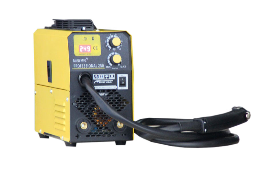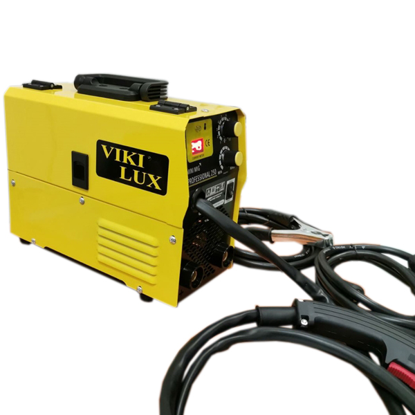 VIKI LUX MIG/CO2-250 А професионални инверторни заваръчни апарати с вградено телоподаващо устройство. С тях се заваряват всички черни метали, алуминий, неръждавейка, чугун, бронз и месинг. Окомплектовани са с ръкохватка за МИГ заваряване, щипка маса, маска и чукче с четка,оригинални ръкавици за заваряване от телешка кожа, ролка 5 кг. Регулиране на заваръчния ток/плавно/ 30-250 ампера, монофазни. Захранваща мощност: 5,2 kVA, Степен на защита: IP 23. Работи с телове размери 0.6 , 0.8 и 1.0 мм. и с ролки от 1 кг. Предназначен е за ремонтни и сервизни дейности. Поради малкия си габарит, тегло и широкия спектър на заваряване с HITECH ТЕХНОЛОГИЯ VIKI LUX MIG/CO2-250 А заварява почти всички видове метал и е удобен за монтажни заварки от професионалисти и начинаещи заварчици. По желание на клиента, телоподаващото може да се окомплектова с манометър и малка бутилка СО 2 7.5 л.