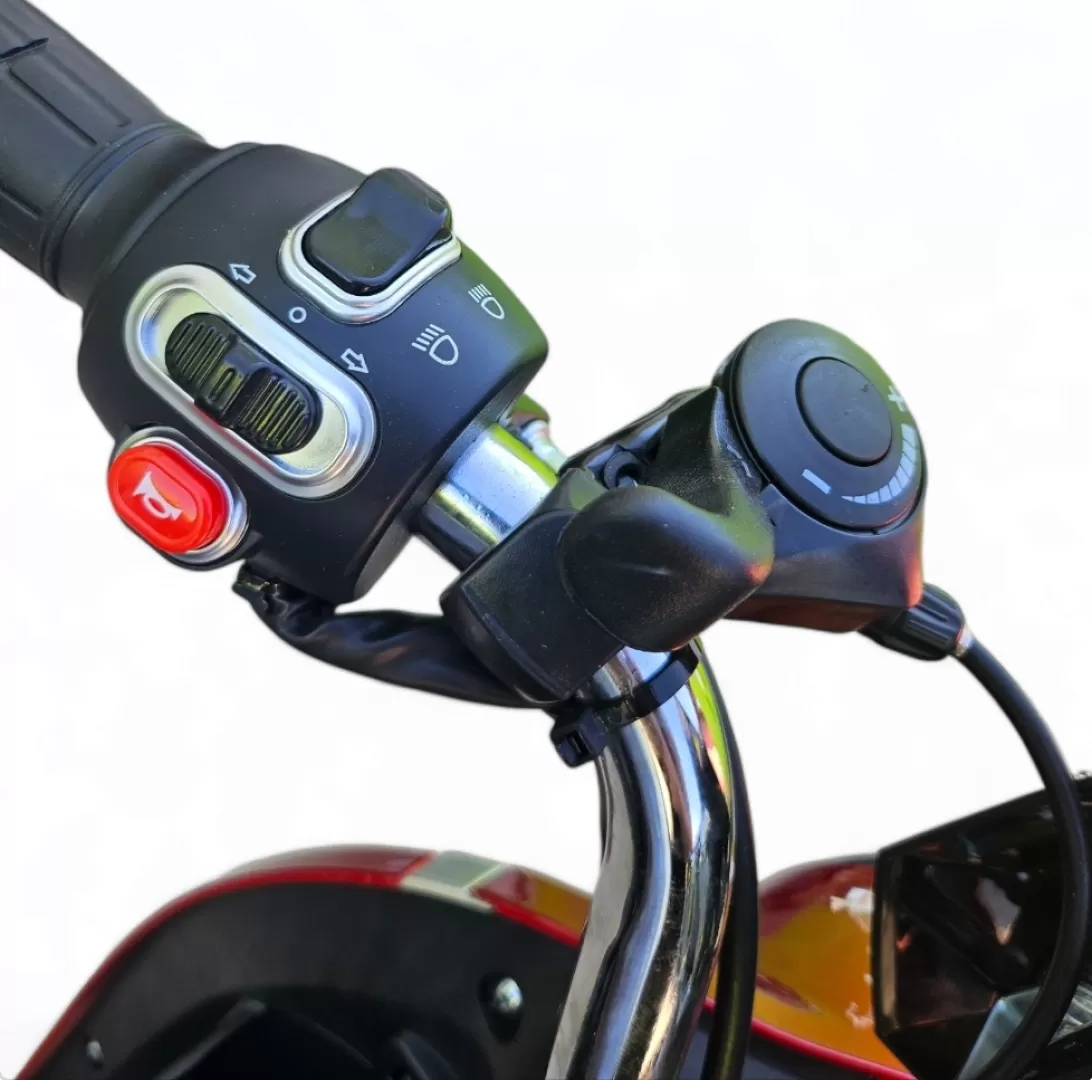 Предлагаме на Вашето внимание електрическа триколка MaxMotors X2 1500W – подобрения в окачването, контролера, спирачките и най-важното тя е снабдена с три вида скорости – бавна, средна и бърза /с плавен старт/. Моделът е изключително атрактивен и подходящ за разходка. Последен модел на такъв тип триколки – нищо общо с предлаганите подобни на пазара. Изключително функционални, както за града, така и за по-малките населени места.Триколката е с дигитално табло, три нива на скоростта, стопове, мигачи и габарити,LED фар.Предна и задна ръчни спирачки. Крачна спирачка. Голям кош за багаж. Триколката е с вградена втора седалка за допълнителен пасажер, като самата седалка се движи във височина, което създава удобство за нисък или висок човек + подарък трета малка седалка.