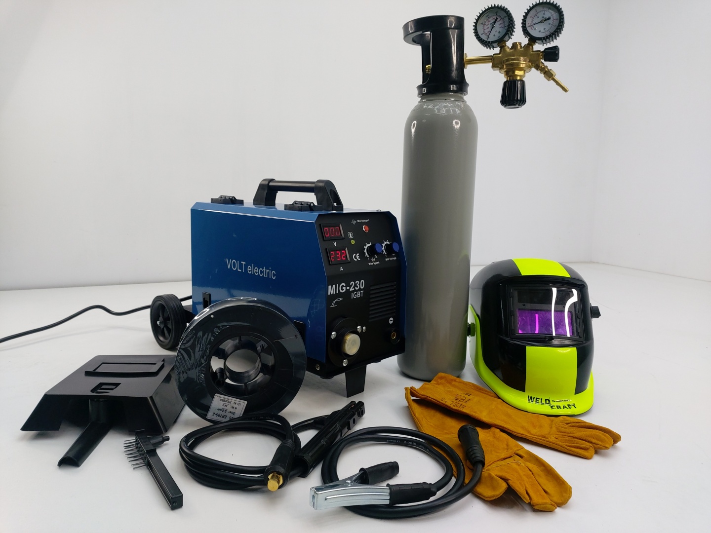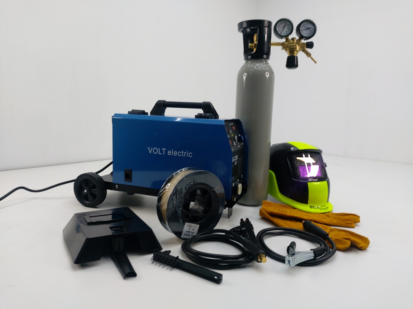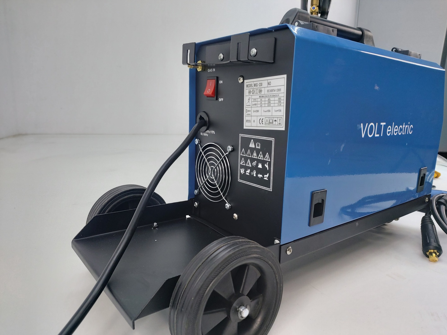 Предлагаме, супер професионално инверторно телоподаващо устройство MIG 230А VOLT electric Profesional , за монофазен ток. Висок клас технология. Регулиране на заваръчния ток/плавно/ 20-230A ампера, монофазен /230V/. Степен на защита – IP 21S. Работи с ролки от 1 и 5 кг. Окомплектовани са с еврошланг за МИГ/МАГ заваряване, щипка маса, маска, чукче с четка, оригинални ръкавици за заваряване от телешка кожа, ролка. Предназначен е за ремонтни и сервизни дейности. Поради широкия спектър на заваряване с HITECH ТЕХНОЛОГИЯ, заварява почти всички видове метал и е удобен за монтажни заварки от професионалисти и начинаещи заварчици. По желание на клиента, телоподаващо MIG 230 А VOLT electric, може да се окомплектова с манометър и малка бутилка СО2 6.7 литра.